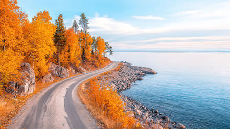 Autumn landscape with road on the shore of Lake Baikal