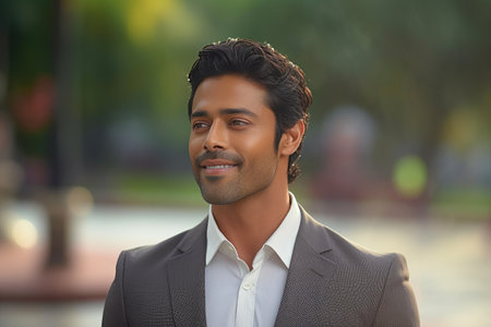 Handsome Indian man posing in an urban context. Street fashion and style.