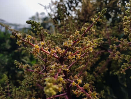 This is the mango flower close-up macro shot in the morning in the winter season in india.