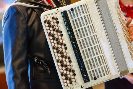 Fragments of musical instrument bayan close-up