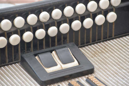 Old vintage accordion close up. Musical instrument.