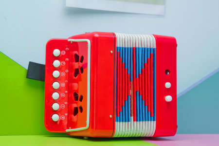 A little accordion, harmonic, musical instrument, music repair white keys . musical instrument Garmon on a white background
