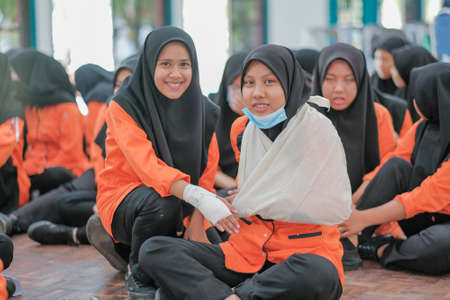 young students activist holding hands together in a rally on indonesian independence day