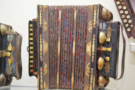 Details of an old accordion, closeup view.