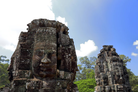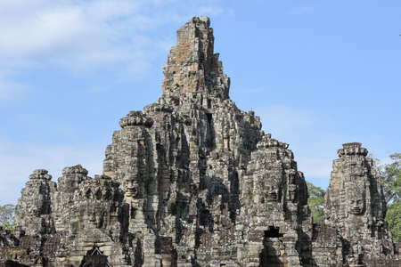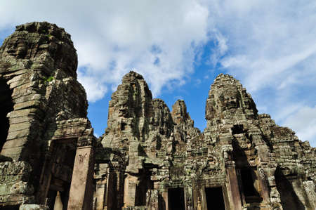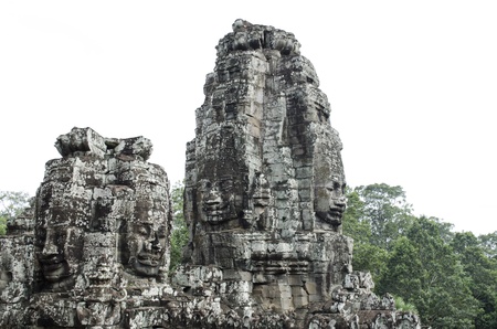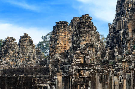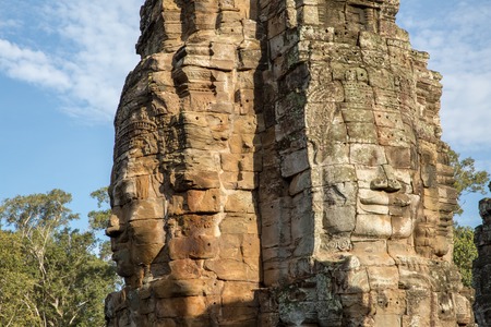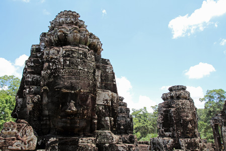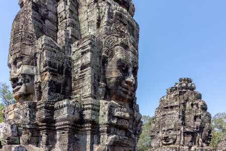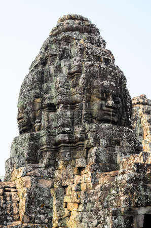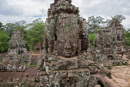 Stone heads on towers of Bayon temple in Angkor Thom, Cambodia