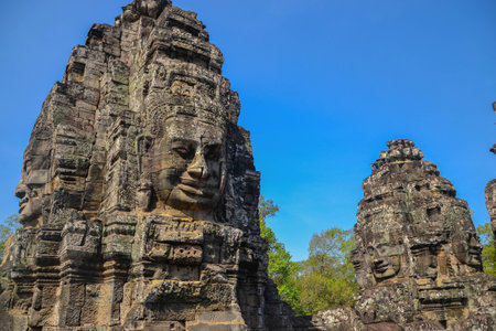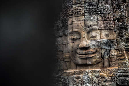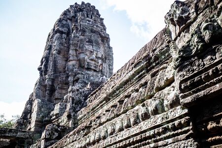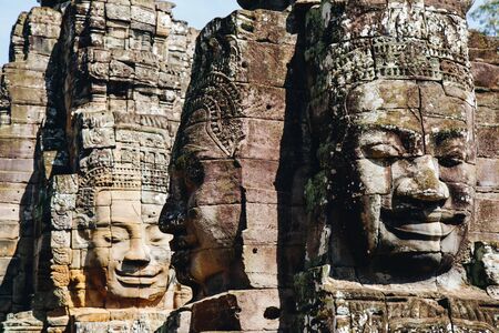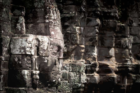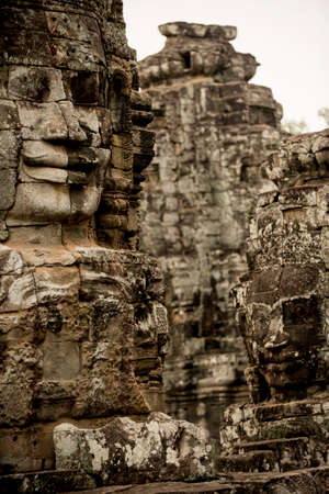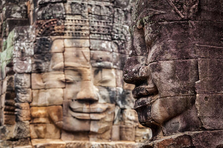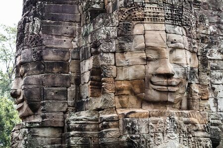 Ancient stone faces of Bayon temple, Angkor wat Siam Reap Cambodia