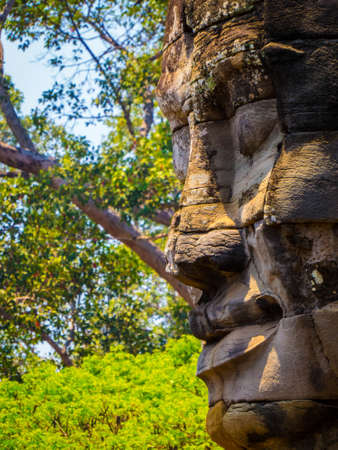 An ancient king face of temple in angkor thom, Siem Reap, Cambodia