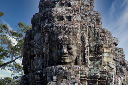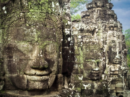 Ancient stone faces of Bayon temple, Cambodia
