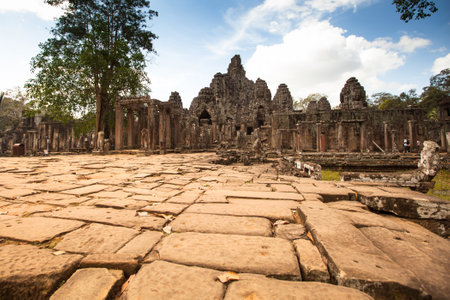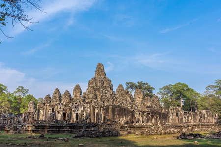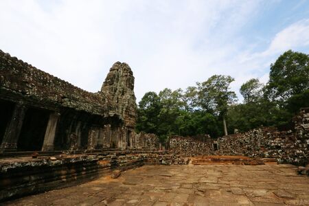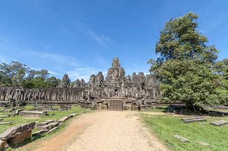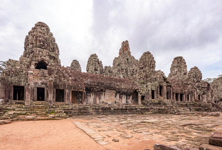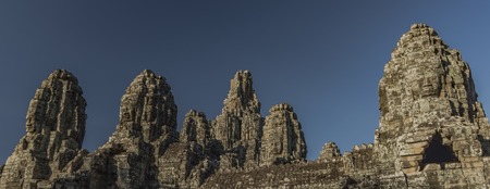 Panorama of ancient Prasat Bayon temple (late 12th - early 13th century) in Angkor Thom, Siem Reap, Cambodia.
