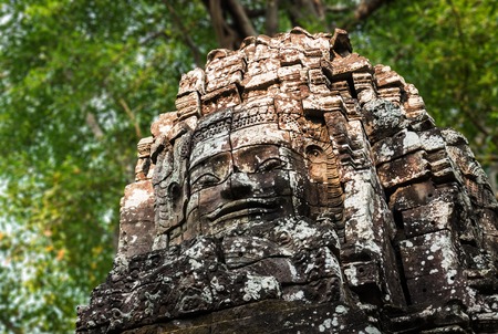 A giant stone statue from the ancient temples of Angkor which is one of the most important archaeological sites in the world.