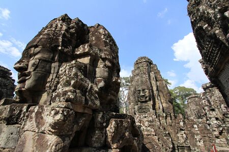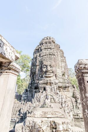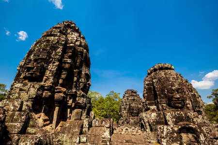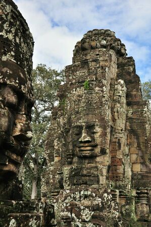 Famous faces of Bayon, the most notable temple at Angkor Thom, Cambodia