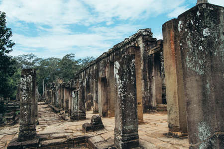 Careless ruins of Ankgor thom in Cambodia on a summer's day - Colourful photo