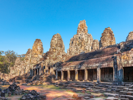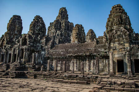 Prasat Bayon, part of Angkor Khmer temple complex, popular among tourists ancient landmark and place of worship in Southeast Asia. Siem Reap, Cambodia.
