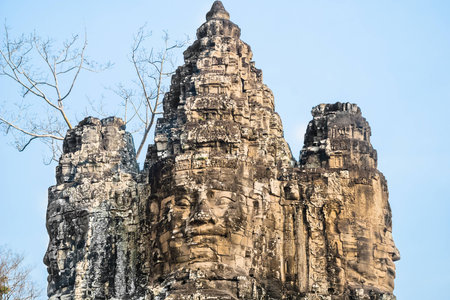 An ancient king face of temple in angkor thom, Siem Reap, Cambodia