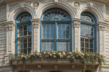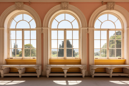 a row of tall, rounded windows in an italianate mansion, created with generative ai