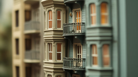 Explore intricately designed model buildings capturing Victorian architecture in an urban environment.