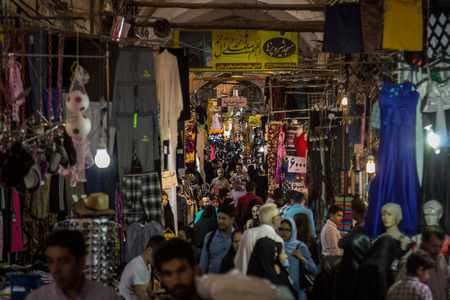 ISFAHAN, IRAN - AUGUST 20, 2018: Street of the Isfahan bazar in the evening, crowded and packed with people in the covered market. Symbol of the Persian architecture, it's a major landmark of the city