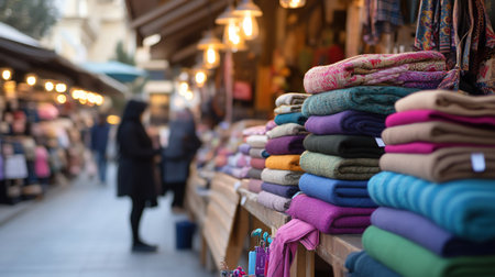 Colorful market filled with energy, featuring colorful textiles and exquisite handmade crafts. Generative AI