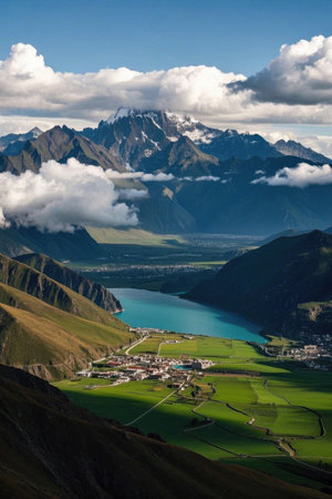 A picture of tranquility in the mountains and countryside, a secret valley shrouded in clouds and mist