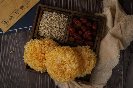 An intimate, tightly framed square still life focusing on the rich textures and colors of Lunar New