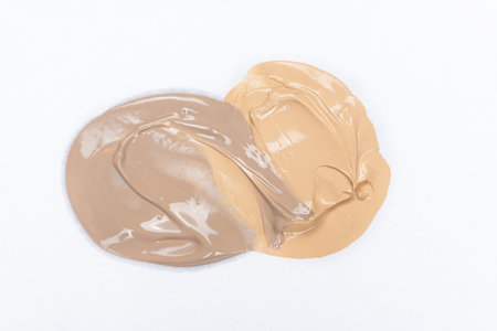 Concealer mat tube and cream smear on pink background. Beige foundation swatch. High quality photo