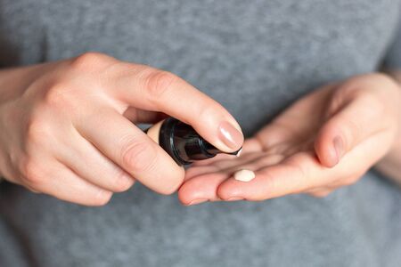 Women's hands hold a cosmetic copy space cream. An article about care cosmetics. hand cream. face cream.