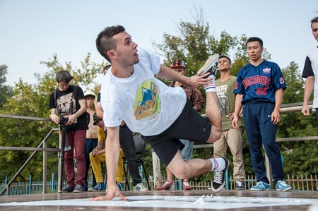 ORENBURG, ORENBURG region, RUSSIA, 16 August, 2014 year. Outdoor Youth Festival of hip hop culture (Street Life). Artist break dance