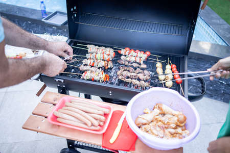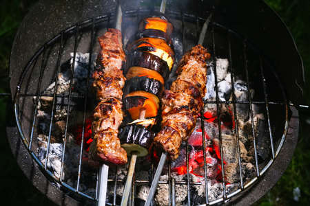Summer outdoor cooking on barbecue grill.