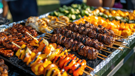 Enjoy a vibrant display of grilled skewers featuring juicy meat and fresh vegetables. Perfect for summer gatherings and outdoor cooking adventures.