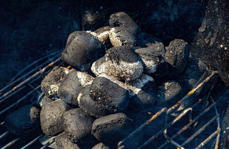 Hot barbecue coals being fired closeup background
