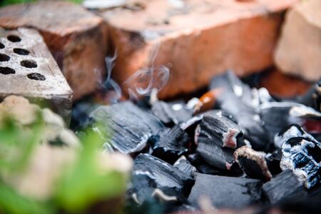 Photo of smoke above hot charcoal