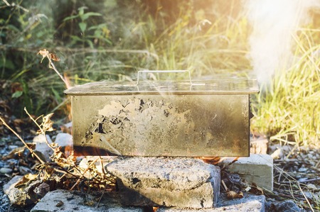 preparing the smoking container to stun the bees without a lid and to smoke in the field