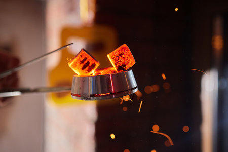 hookah hot coals for smoking and leisure in natural lighting.