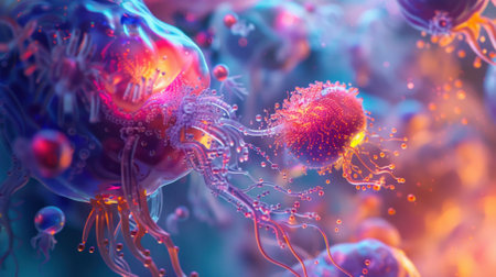 Vivid portrayal of cellular structures showcasing detailed biological research.