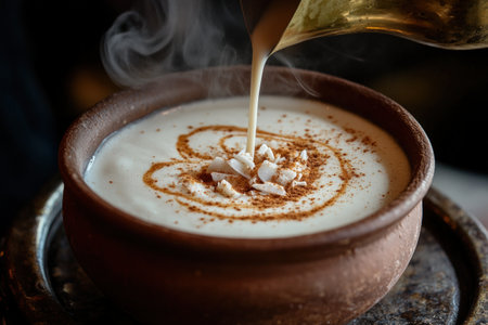 Boza or Bosa, traditional Turkish dessert made of millet or corn flour
