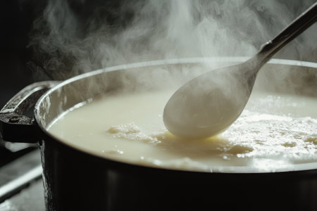 cooking French bechamel sauce macro horizontal top view