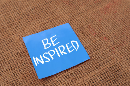 Be inspired, text words typography written on paper against wooden background, life and business motivational inspirational concept