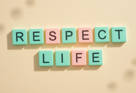 A vibrant arrangement of letter tiles spelling Respect Life on a simple background, promoting positivity and awareness in daily life. Ideal for decor or educational use.