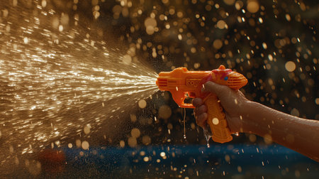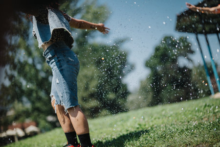 Child catching water in their hand, creating a beautiful splash in bright sunlight
