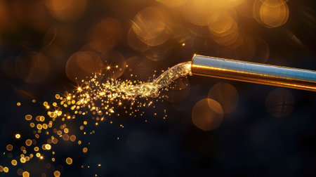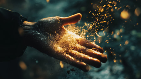 A mesmerizing image of a hand releasing golden sparkles against a dark and moody background, evoking a sense of magic and wonder.