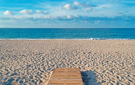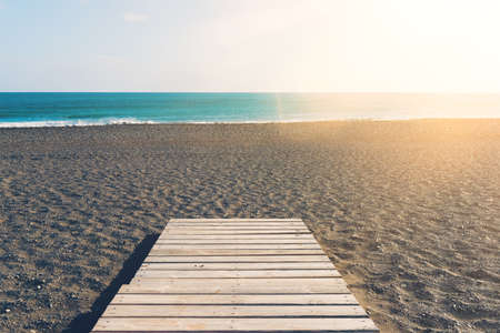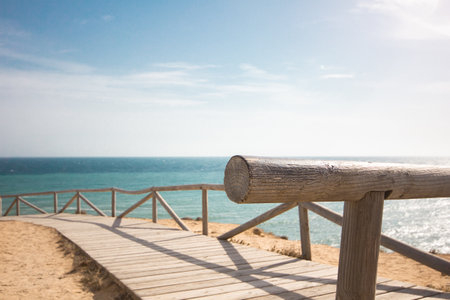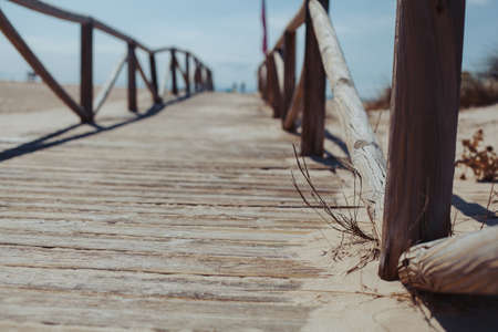 Wooden walkway path leading to the sunny beach