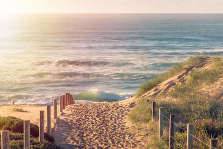 Beautiful pathway to the beach on a sunny morning, travel or vacation concept