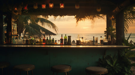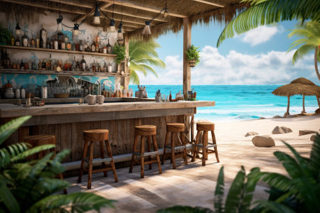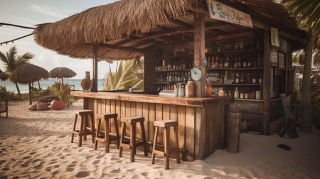 Cocktail bar at a tropical beach. Generative AI.