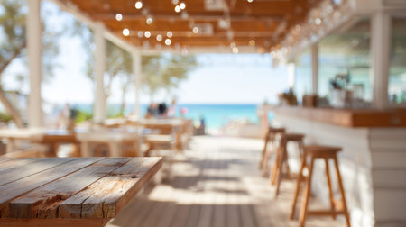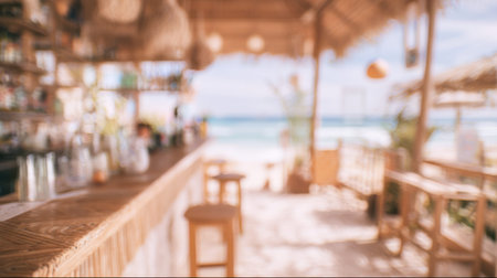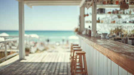 stylish blurred coastal bar background with tropical luxury ambiance