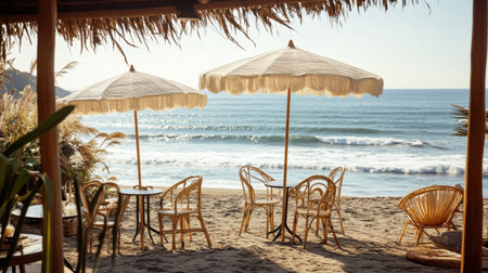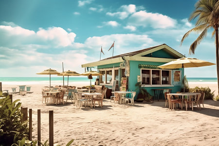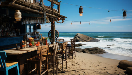 Beach bar ocean vintage. Relax coastline. Generate AI