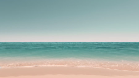 Minimalist summer beach background with soft sand, a calm ocean, and plenty of space for mockups or text