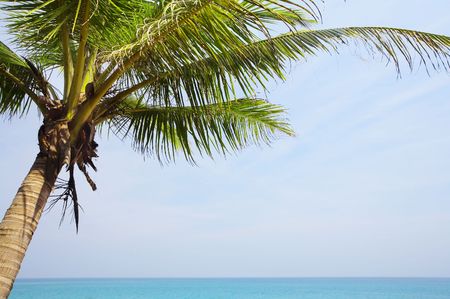 Green palm tree on beach in Phuket island blue sky background Summer sea landscape
