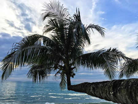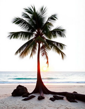 coconut tree on the beach at sunset, beautiful photo digital picture