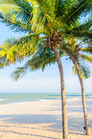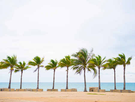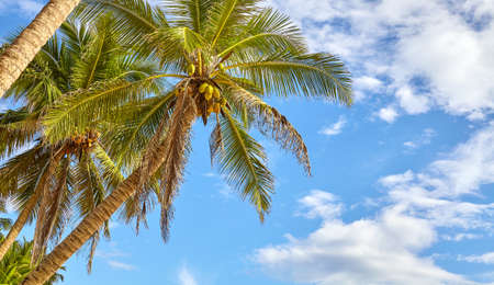 coconut palm trees farm Beachfront seaside Leave space copy write a message in the sky. beautiful summer tropical landscape background