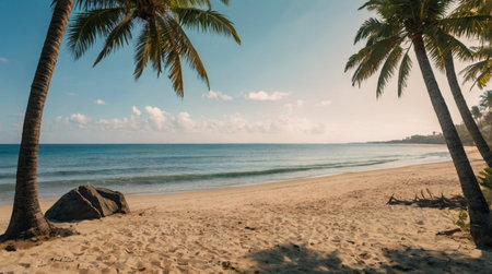 Tropical beach escape with crystal clear waters and gentle waves. Banner.